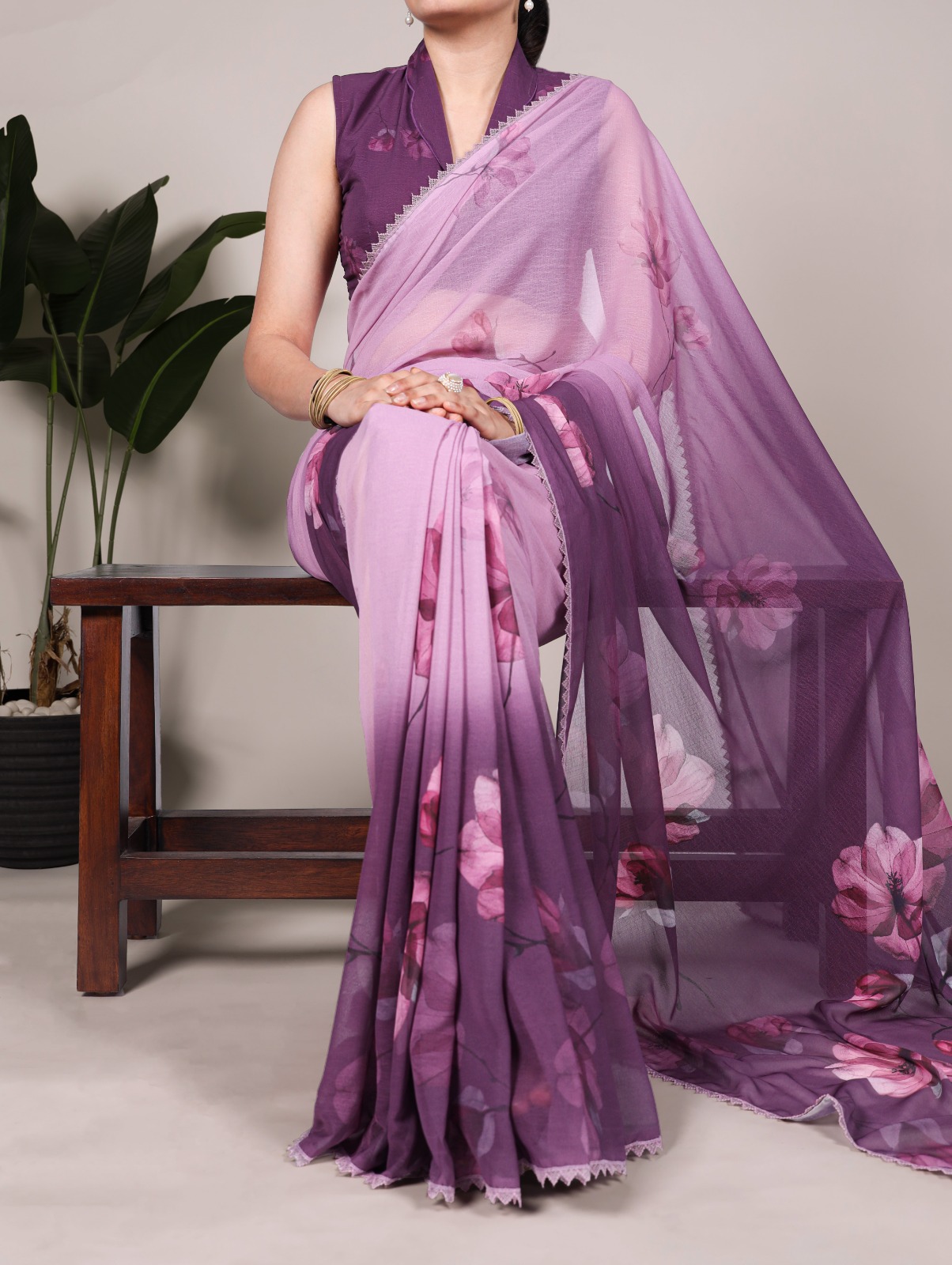 Two Shadow Weightless Printed Saree | Floral Lace Border Ethnic Drape